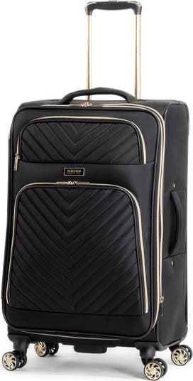 Spinner wheels promote easy mobility on this chic chevron quilt embossed travel case.