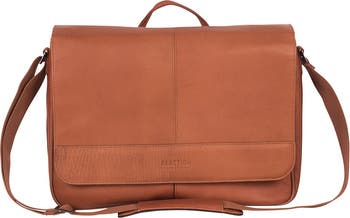 Carry your business essentials and stay organized with this luxurious, Kenneth Cole Reaction, Colombian leather flapover business messenger bag. Loaded with features, including a spacious fully-lined interior, a large main compartment that can fit laptops with up to a 15.6-inch screen, a full-length zipper accessory pocket, two open-top organizational pockets, and a rear exterior open top pocket for easy access to frequently needed items. Travel comfortably with a padded, adjustable shoulder strap that extends 60 inches. The perfect slim leather messenger bag for the modern traveler.