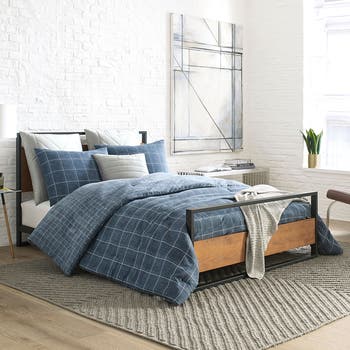 Crafted from high-quality durable fabric with a grid print, this comforter set adds a sophisticated element to any bedroom decor.