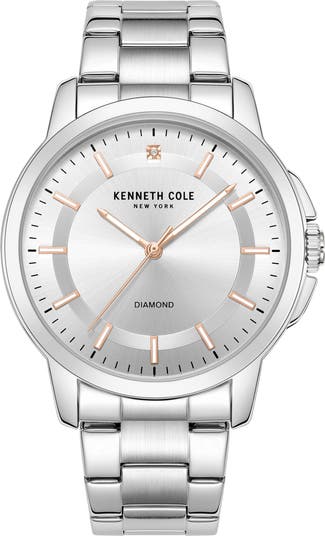 A classic design and a diamond marker at 12 o'clock bring timeless elegance to this stainless steel bracelet watch that's an essential for everyday wear.
