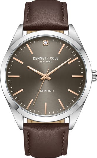 This sleek and minimalist leather-strap watch with streamlined indexes brings functionality to your casual attire.