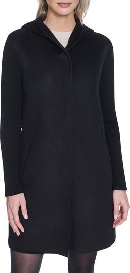 Stay cozily warm this season with this wool-blend coat that features an attached hood for extra coverage.