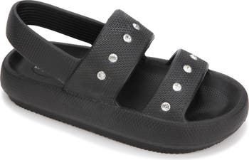 Sparkly rhinestones punctuate the straps of a slingback sandal complete with a lightweight construction and cushioned footbed.