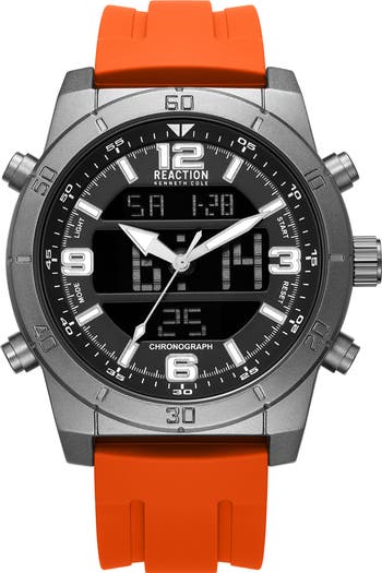 A classic design brings timeless elegance to this stainless steel silicone-strap watch that's an essential for everyday wear.