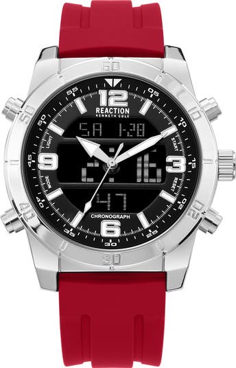 A classic design brings timeless elegance to this stainless steel silicone-strap watch that's an essential for everyday wear.