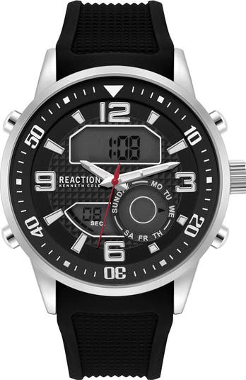 Analog Digital Silicone Strap Chronograph Watch, 46mm
