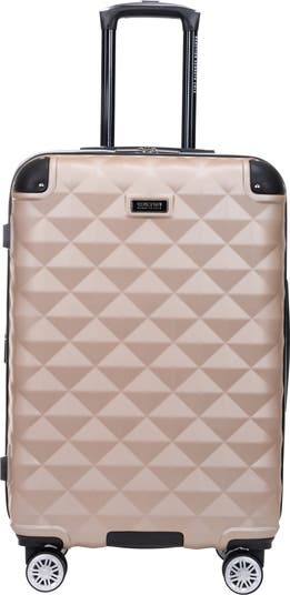 Multi-directional 8-wheel spinners allow smooth, 360-degree movement over any rough surface for complete mobility free-weight rolling, relieving any pressure from your arms while on the move. Lightweight construction helps you adhere to airline weight restrictions to avoid unneeded airport fees. Expands an additional 2-inches for added packing capacity. High-strength, hardside, diamond-textured, and diamond embossed ABS exterior with a tear-resistant, fully-lined interior. Molded corner guard reinforcements for absorbing and deflecting shock for maximum impact resistance. Features premium, self-repairing coil zippers for long-lasting use and interlocking zipper pullers providing the option to apply your own TSA lock onto your suitcase. Under the lid features a large U-shaped zipper pocket allowing for dual-sided packing, a zippered mesh pocket, and elastic shoe pockets.