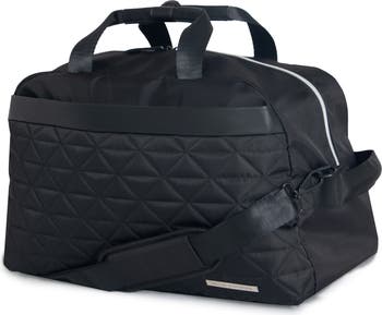 Get ready for your upcoming getaway with this spacious duffle bag featuring organized zip compartments and a diamond-quilt texture for on-trend appeal.