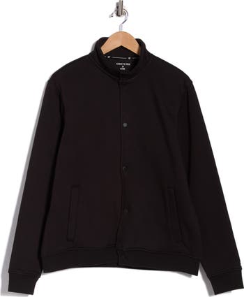 Layer on this soft cotton-blend fleece jacket featuring a cozy stand collar, sporty snap-front closure and handy welt pockets.