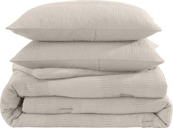 A textured waffle design adds contemporary sophistication to this pure-cotton duvet and sham set that's the perfect way to refresh your bedroom decor.