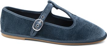 Fashioned from luxe velvet and topped with a classic T-strap, this lightly cushioned flat adds a perfectly vintage vibe to any look.