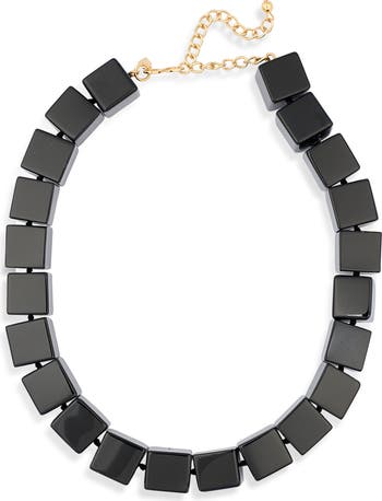 Adorn your neckline with this statement necklace strung with square beads.