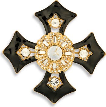 Show off vintage-inspired shine with this elegant cross pin illuminated by sparkly crystals and finished in glossy enamel.