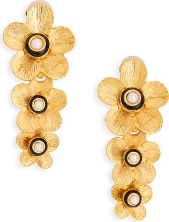 Show off vintage-inspired shine with these gleaming flower-link drop earrings trimmed with glossy enamel and faux pearls.
