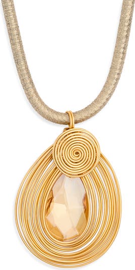 Go from getting dressed to making a statement with this bold pendant necklace that boasts a wire-wrapped crystal pendant.