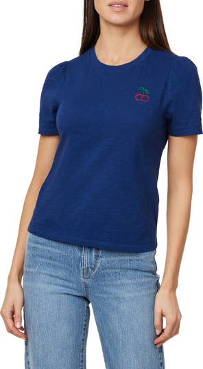 Look sweet in this cotton T-shirt featuring cheery embroidery at the chest.