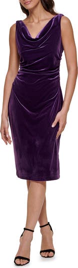 A sleeveless pencil dress with side ruching embedded in sultry velvet.