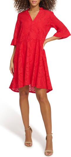 Ruffle-trimmed sleeve hems bring playful movement to a charming dress cut from airy, embroidered cotton and a breezy silhouette.