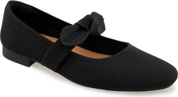 Everyday comfort meets classic style in this mary jane flat featuring a cushioned footbed and a knit upper.