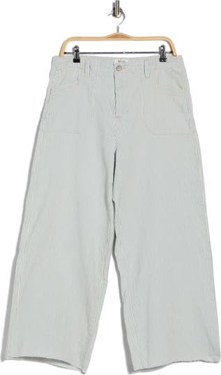 Go casual in these retro high-waisted wide-leg jeans fashioned with roomy pockets and raw-cut hems.