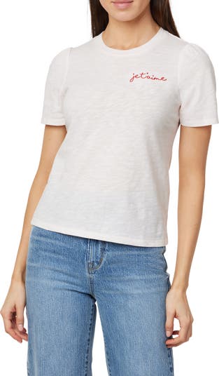 Spread a little endearment in this cotton T-shirt featuring a Je t'aime embroidery at the chest.