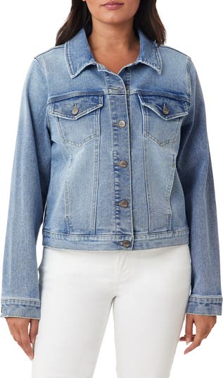 Show off timelessly cool style in this cropped trucker jacket cut from perfectly faded denim with just-right stretch.