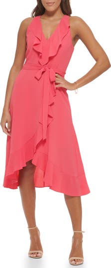 • Kensie Flutter Sleeve High-Low Maxi Dress