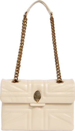 Soft, quilted leather is set off with a polished chain strap and eagle-eyed clasp on a shoulder bag that packs a luxurious punch.
