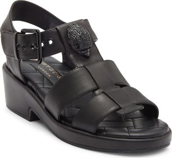 Gleaming eagle's-head hardware brings signature style to this fisherman-inspired sandal grounded by a quilted footbed and low block heel.