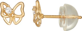 Perfect for their budding jewelry collection, these butterfly studs are crafted from fine 14-karat gold and punctuated with a white diamond at the right corner of each.