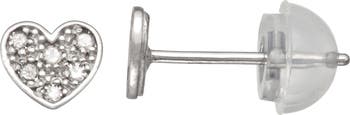 Add sparkle to your little trendsetter's lobes with heart-shaped studs, each featuring six diamonds for light-catching, eye-catching charm.
