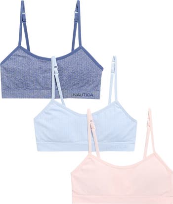 An assorted trio of heathered rib sports bras makes the perfect set of basics for your growing kiddo.