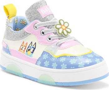 A bright white bumper gives sporty flair to this character-themed sneaker covered in a mix of colorful finishes. Elastic laces make it easy for little ones to slip on and go all by themselves.