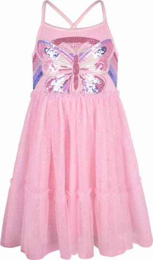 They'll love to twirl in this butterfly sequined dress featuring a sparkly tutu skirt.