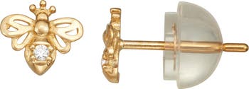Add sparkle to your little trendsetter's lobes with bee-shaped studs, each featuring a single round-cut diamond.