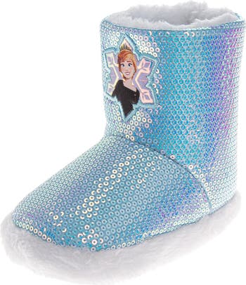Your little one will be glam and cozy at home when they wear this sparkly Frozen-themed slipper boot lined in fluffy fleece.