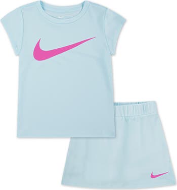Your kiddo will be ready to move in this Nike T-shirt and shorts set that is built from Dri-Fit fabric that'll keep them dry and cool.