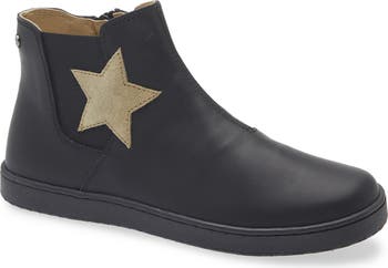 A suede star appliqué punctuates the side of this kid-sized Chelsea boot grounded by a flexible rubber sole.