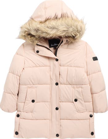 Keep your little one cozy in this heavyweight puffer jacket featuring a glam faux-fur trimmed hood, handy snap pockets and warm down-alternative fill.