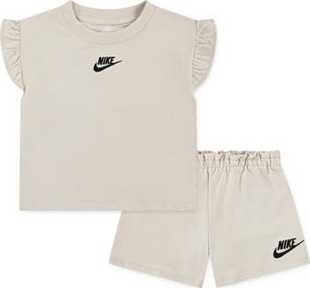 They'll move around the playground with ease in this athletic set featuring a logo T-shirt and coordinating shorts.