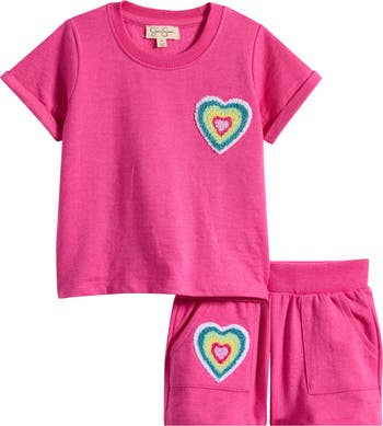 French terry ensures your tot will be extracozy in this coordinating set punctuated with fuzzy heart appliqués.