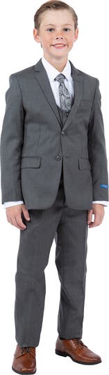 Cut from finely woven sharkskin, your little one will stand out in this five-piece suit that's a stylish and sophisticated pick for formal occasions.