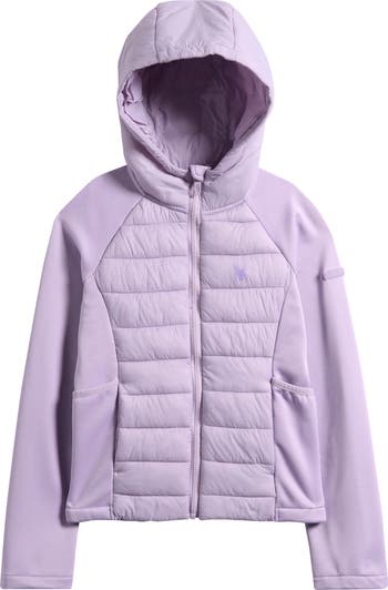 Designed to keep them warm during cold-weather months, this mixed-media hooded jacket features both hand-warming pockets and drop-in pockets for mittens or anything else they want to keep handy.