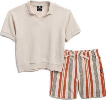The perfect mix of preppy and beachy, this knit polo and printed shorts set will have your tot showcasing their warm-weather style.
