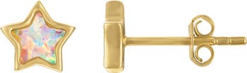 Let your kid shine like the star they are with these shimmery lab-grown-opal star stud earrings made for pierced ears.
