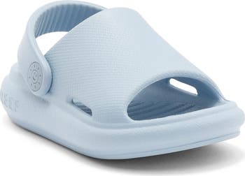 Little feet will appreciate the cushy, contoured footbed of a casual sandal that has a waterproof design to make it a warm-weather essential.
