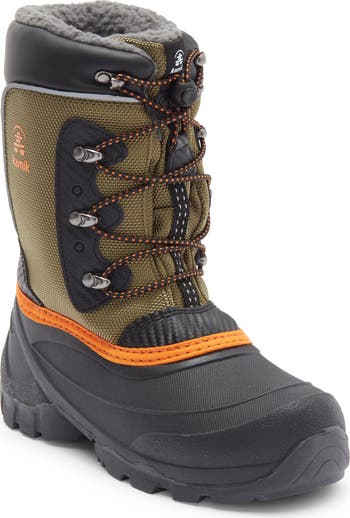 A waterproof 1200-denier nylon upper keeps your kiddo's feet warm and protected during the cold-weather months in this snow boot fitted with moisture-wicking fleece lining.