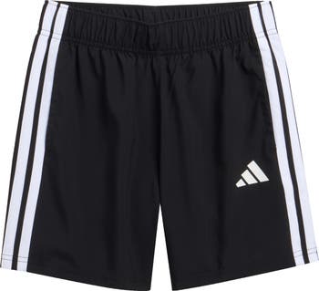 These sport-ready shorts are updated in a mid-thigh silhouette for extra comfort and finished with signature side stripes and a brand graphic.