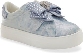 Sparkling rhinestones and a denim upper add charming elements to a play-ready sneaker grounded by a durable cupsole.