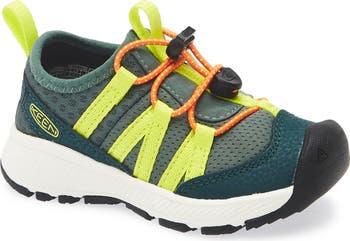 Constructed with a bumper toe and topped with stretchy bungee laces for easy-wear comfort, this breathable mesh sneaker with a grippy traction sole is as adventure-ready as your little one.